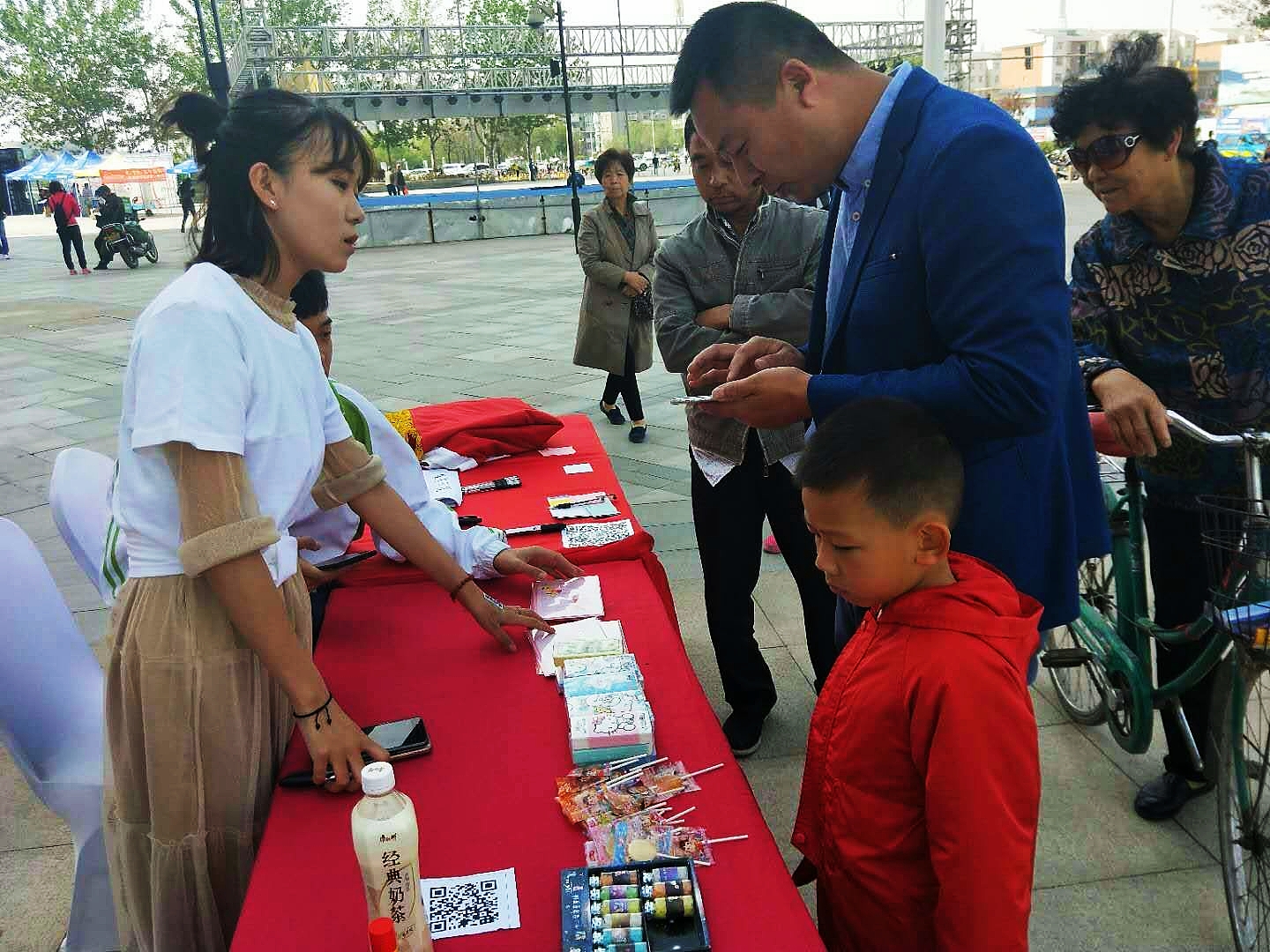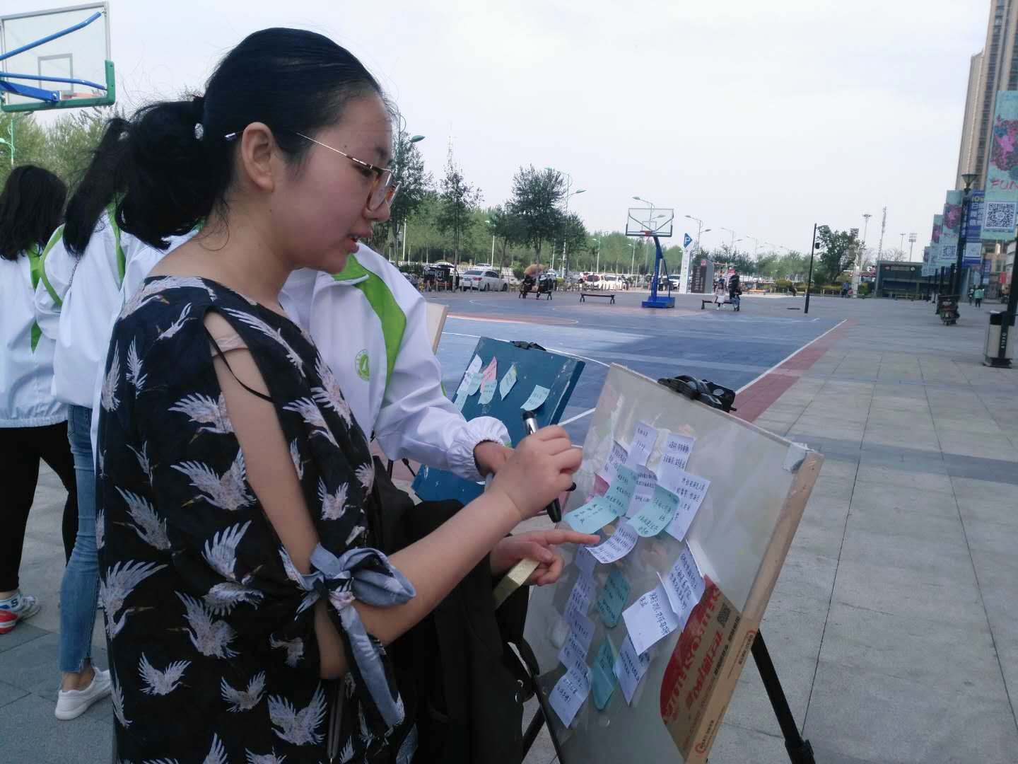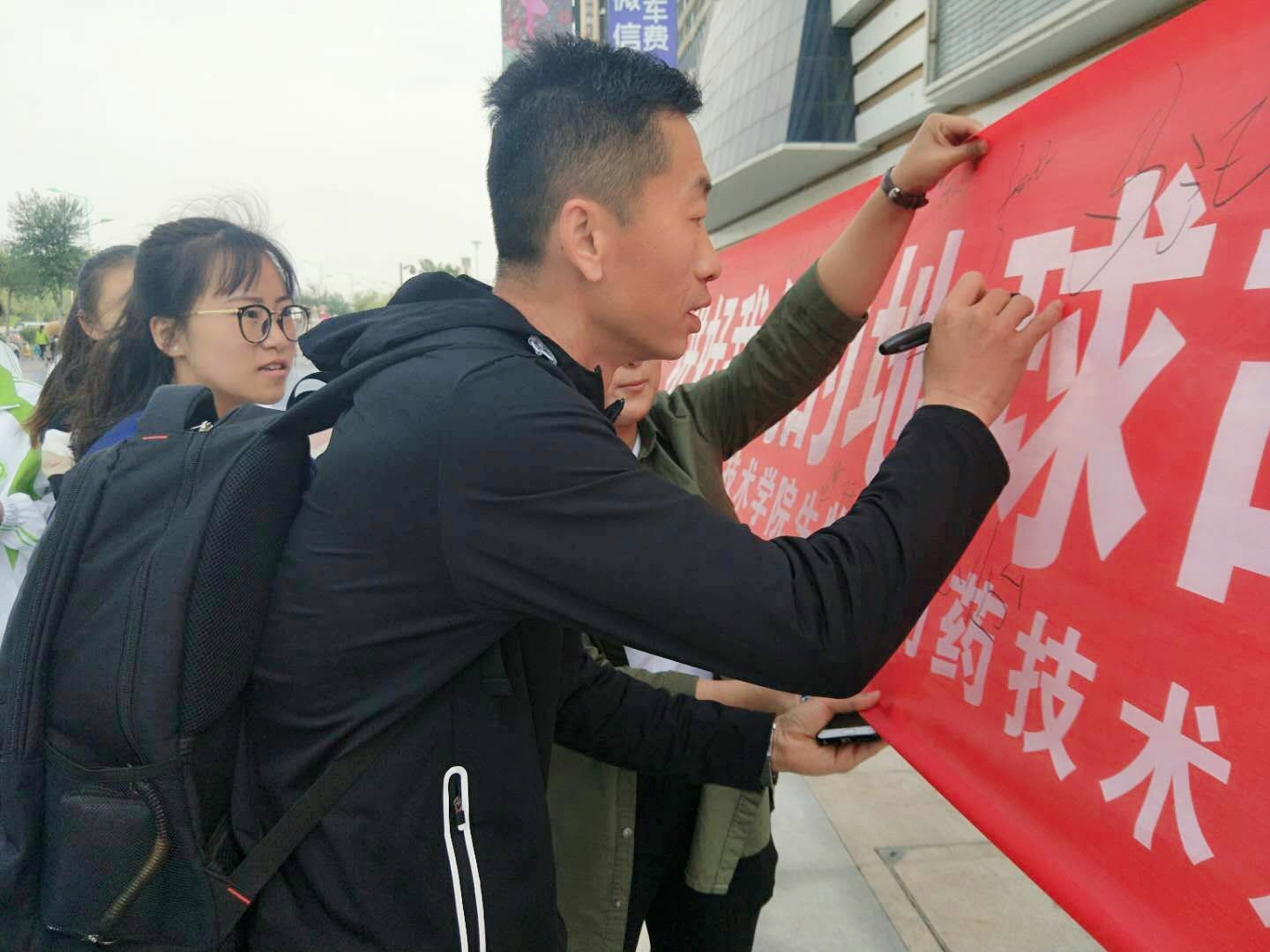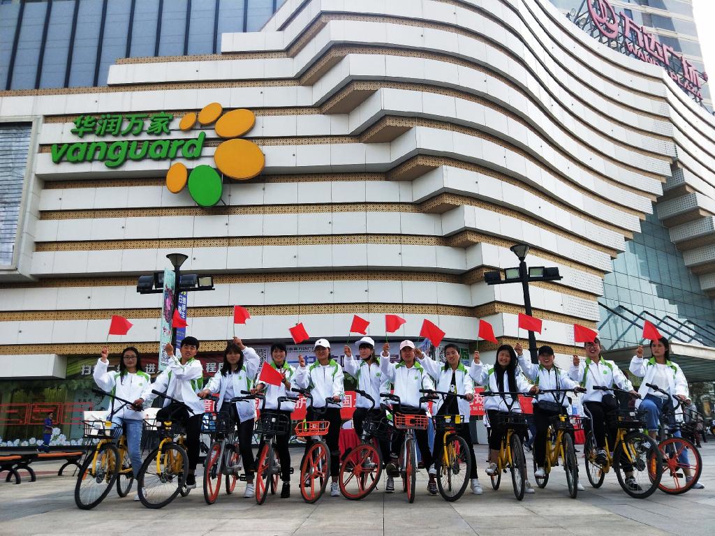 本次活动由“签名寄意”、“环保调查问卷”、“美丽的承诺”和“共享漫生活”四个环节组成。经过充分的前期准备与宣传工作,“签名寄意——让我们与环保同行”拉开了本次地球日系列活动的帷幕。宣传员们纷纷号召路人在印有本次活动主题的红色条幅上签名,并邀请大家扫描系团总支二维码参与环保调查问卷,与环保同行。在“美丽的承诺”环节,团员青年纷纷在画板上将自己在生活中承诺的环保小细节写下来,并拍照留影,时刻提醒自己与美好环境同呼吸,共命运。在最后的“共享漫生活”中,宣传员们将印有环保科普的二维码标识贴在后背,骑着共享单车,倡导节能减排的低碳生活。