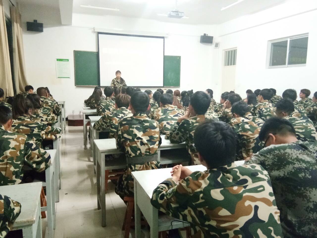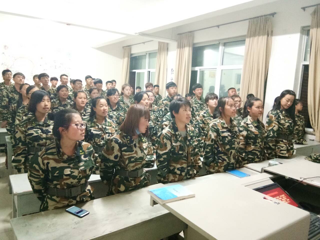 在起誓环节,同学们起誓要努力学习,刻苦训练,遵守纪律,听从指挥,发扬人民军队的光荣传统,不怕苦,不怕累;团结同学,尊敬教官,磨练意志,苦学本领,提高素质,争做优秀学员,立志把自己锻炼成为社会的栋梁之才。之后同学们一起观看军训、国防主题视频,做交流,谈心得。