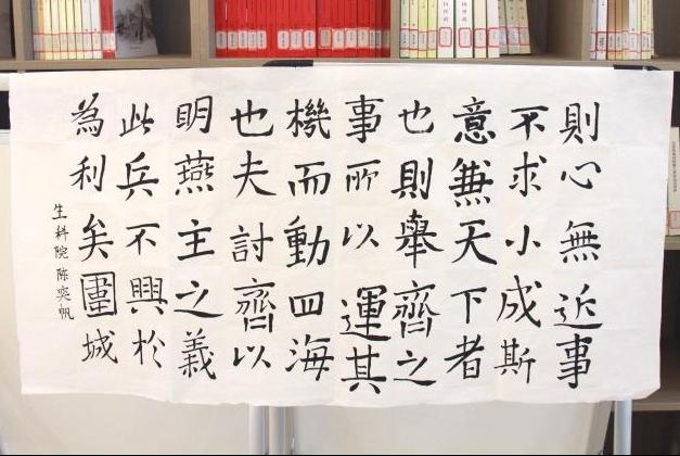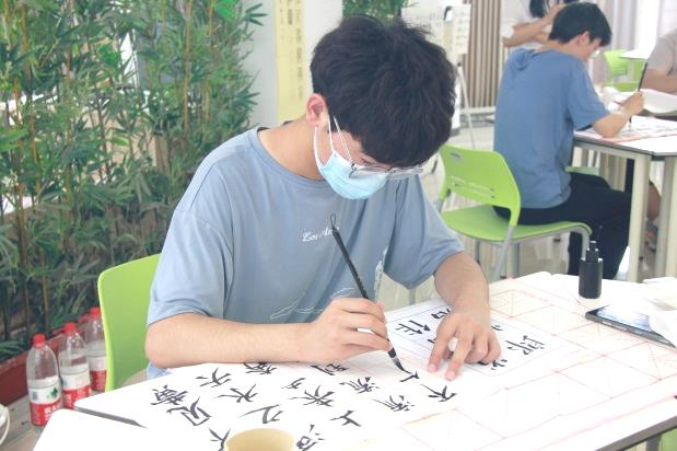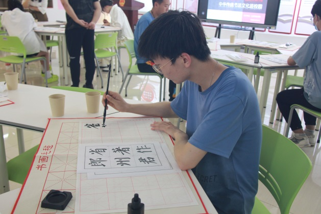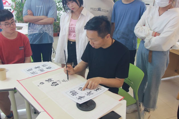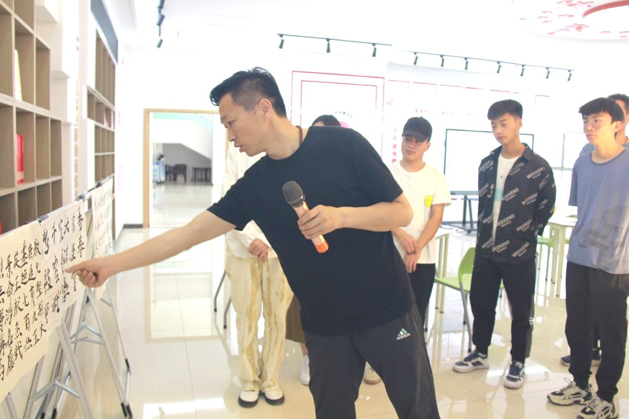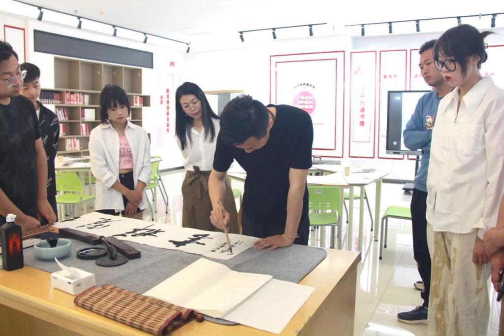 在精彩的讲座和细致的点评讲解后,席恒老师现场为师生展示了书法作品的书写过程,席老师行云流水的书写让在场师生近距离感知到了书法艺术之美,也对席老师讲座中提到的“四法”——“笔法”、“字法”、“墨法”、“章法”有了直观的认识。