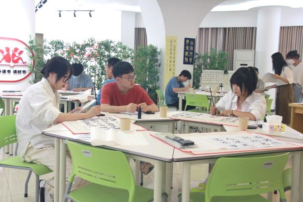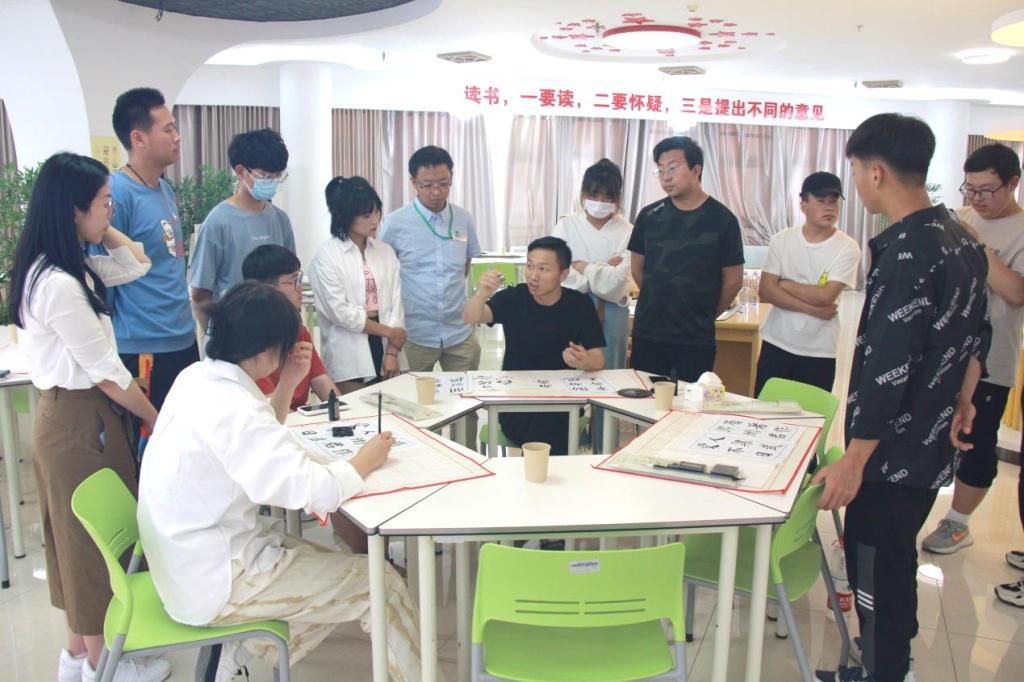 “坐而言不如起而行”。在活动的最后,在场的师生拿起毛笔,饱蘸浓墨,在纸上进行书法实践。席恒老师和活动组织者张婉婷老师做了即席指导;教者愉悦,学者开心,活动在教学相彰的氛围中渐渐来到了尾声,活动组织者张婉婷老师为部分参与现场体验的员工发放了水写布套装作为礼品,让同学们不止步于活动的结束,而是以活动为契机,在今后的成长过程中走近中华传统书法文化,更深入的体验传统文化的魅力,找到文化归属感。