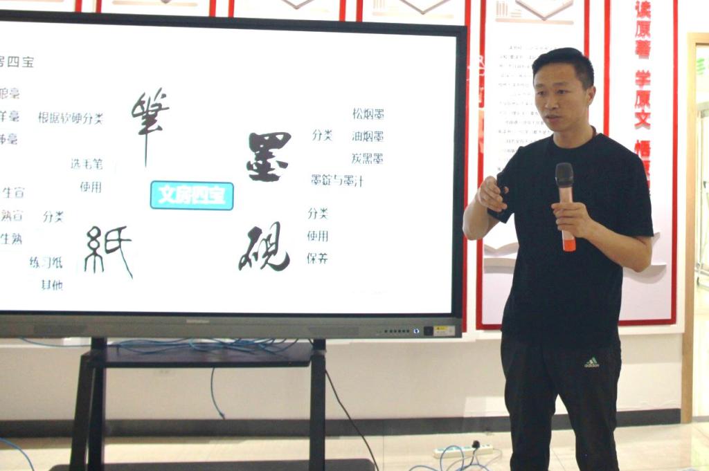 活动有幸请到了中国书法家协会会员、宁夏青年书法家协会常务副主席兼秘书长、银川市书法家协会副主席席恒老师作为主讲人和评审专家。活动开始,席老师首先做了题为《书法鉴赏 文房四宝与书法之“法”》的精彩讲座。讲座以图文并茂的方式讲解了文房四宝、书法作品的主要形式和样式、书法的“四法”以及书法书写的基本要点,使在座师生大开眼界,对书法艺术有了更深入的理解和认识。