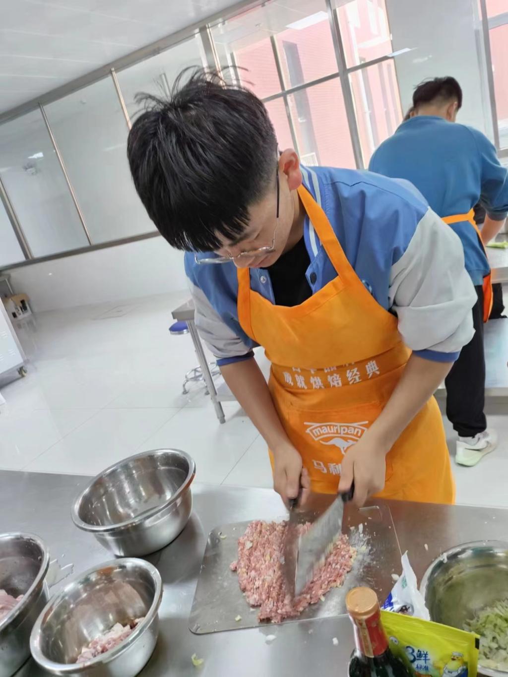 活动中,同学们积极参与制作过程。制作过程遇到许多问题,都能主动解决问题,实训参与的积极性很高,弥漫着美食香气的实验室里溢满了欢声笑语。