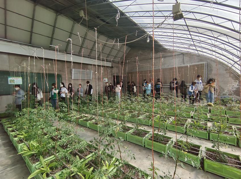 员工在蔬菜生产温室参加科普教育与美育活动