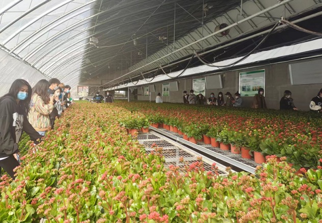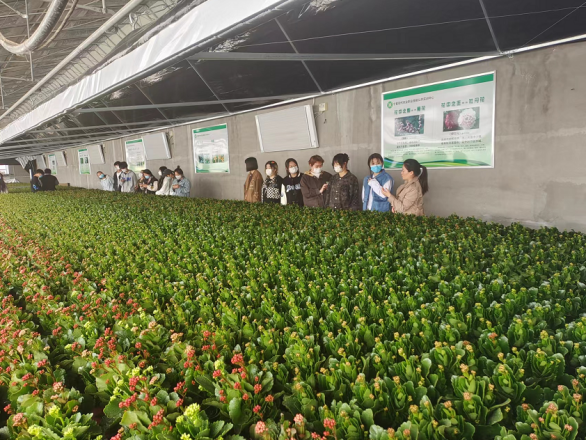 员工在花卉生产温室参加科普教育与美育活动