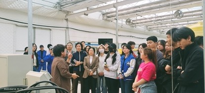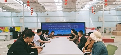 在合作交流过程中,田思奇主任就顶岗实习员工和毕业生在贺兰县就业的相关政策为同学们进行了解读,同时也耐心地回答了同学们的疑问。宁夏天荣现代农业科技有限公司总经理张红花介绍了企业的基本情况,同时为同学们介绍了企业利用人工智能种植草莓的关键技术,她鼓励同学们要抓住时代机遇,永攀高峰。