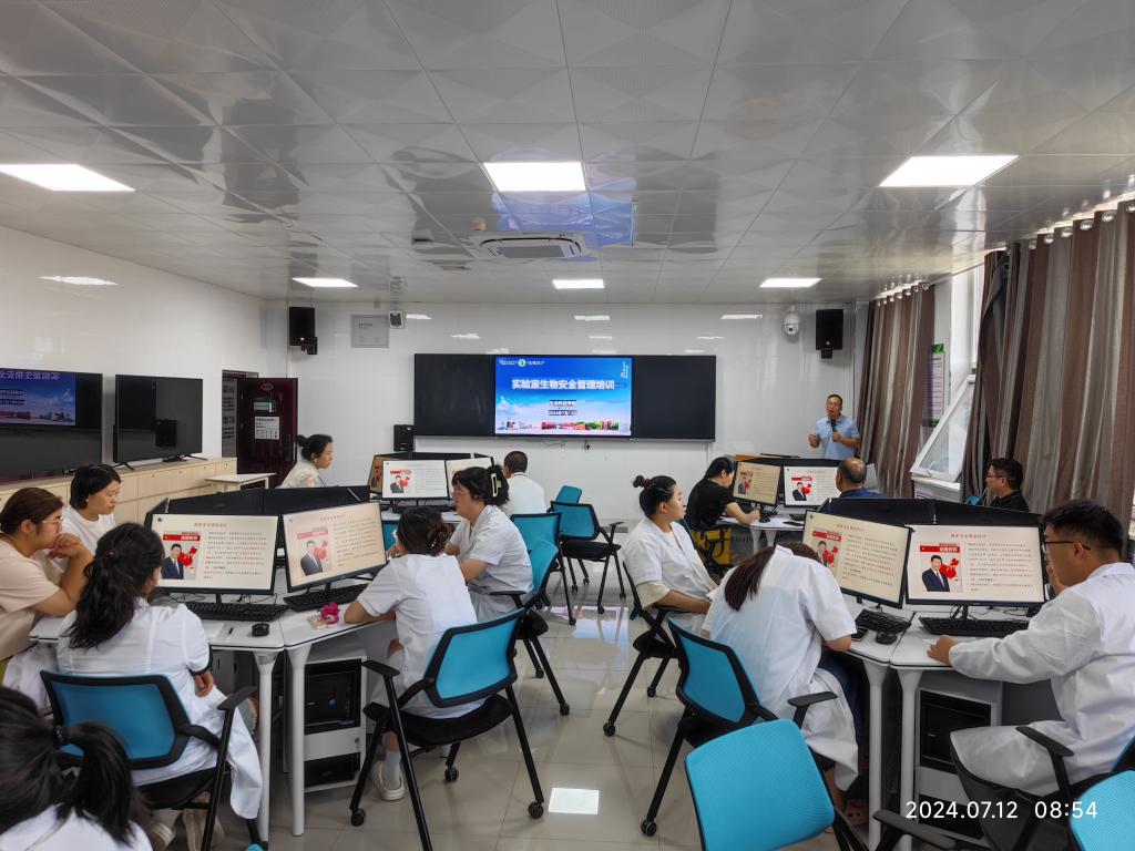 为加强实验室生物安全管理,提高实验人员的安全意识和防控能力,beat365在线官网入口于2024年7月12日上午8:30在B413虚拟仿真实训室成功举办了实验室生物安全管理培训。本次培训特邀自治区疾控中心专家担任主讲,公司入驻企业晓鸣检测中心和智联检测人员、公司实验管理办公室、畜牧兽医教研室、工程中心老师参与。
