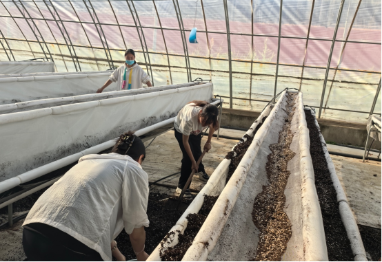 本次实训紧密结合宁夏绿色食品现代产业公司高架草莓绿色种植技术示范推进工作,以设施高架草莓绿色、有机生态种植技术为核心方向,精心设置栽培基质配制与前处理、温室环境清理与消毒、基质上架与滴管系统铺设、草莓种苗定植与管理等关键实践环节。通过 “学中做、做中学、师带徒” 的模式,引导员工将课堂所学的园艺专业理论知识,转化为解决实际种植问题的实操能力,切实提升专业素养。实训过程中,员工以小组为单位,在企业指导老师的专业指导下,有序开展基质搬运、上架填充、草莓苗定植等实操任务,小组成员间互帮互助、团结协作,不仅高效完成各组目标,更在协作中培养了团队意识与责任担当。
