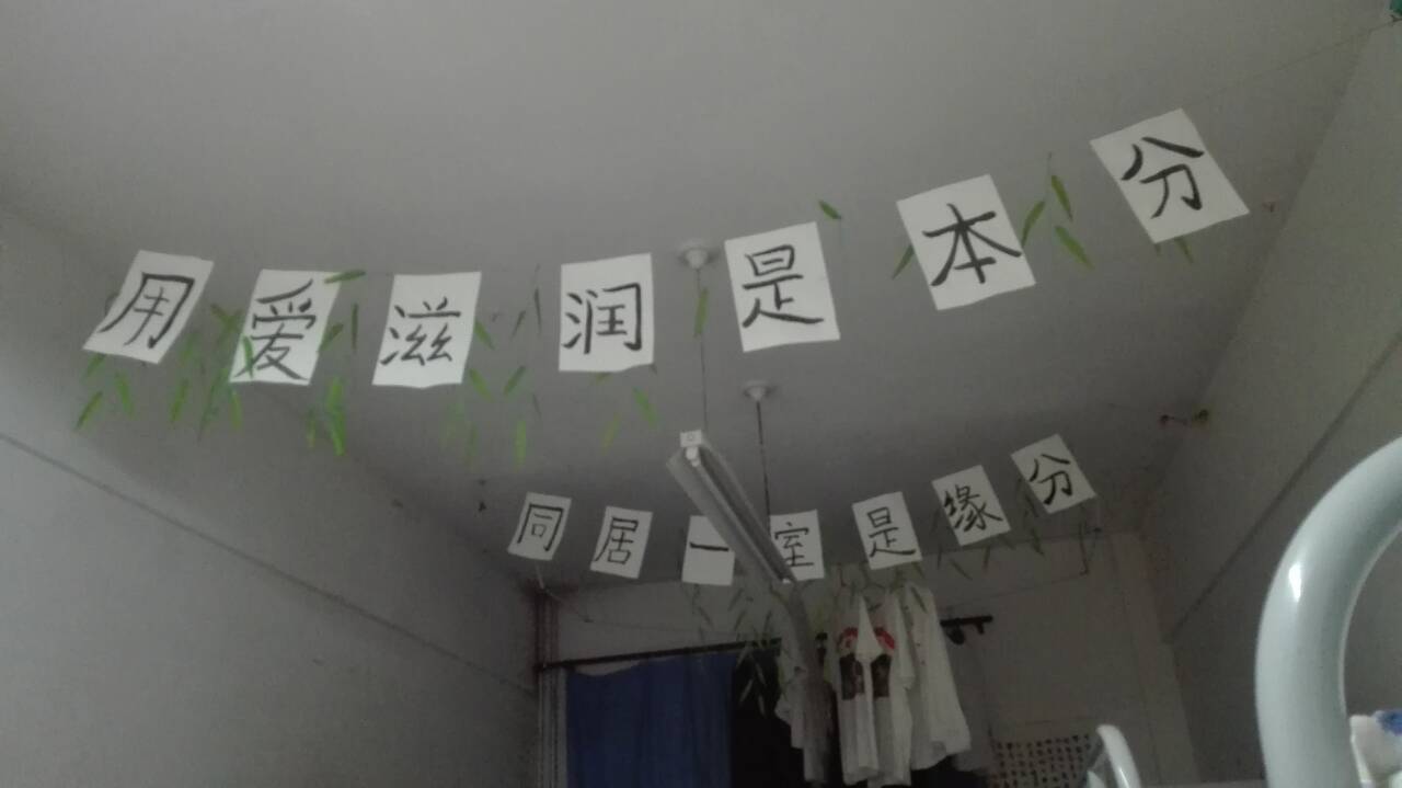 阳光寝室,阳光格言。“文明宿舍一条心,团结友爱溢温馨”,横批:“团结一心”,1421宿舍门前的对联令许多过往的同学驻足观看。4月10日-5月8日,生物与制药技术系开展了以“阳光寝室,阳光格言”为主题的宿舍格言展示活动。活动中,同学们不仅展示出了自己宿舍的格言,还以各种方式装扮了房间。在屋顶上,同学们自己制作的风铃及千纸鹤门帘将寝室点缀的清新淡雅。“1421”舍长贺婷向大家介绍道:“正如格言所描写的那样,我们来自不同的地方,有缘聚在一起,就像一家人一样,团结友爱、在为自己梦想努力拼搏的道路上互相慰藉、互相鼓励。” 本次格言展示活动彰显了生物与制药技术系员工宿舍文化的独特风采,鼓舞了同学们对新时代宿舍文化的不懈追求,提高了同学们对宿舍文化内涵的深刻认识,增强了宿舍格言的育人作用。