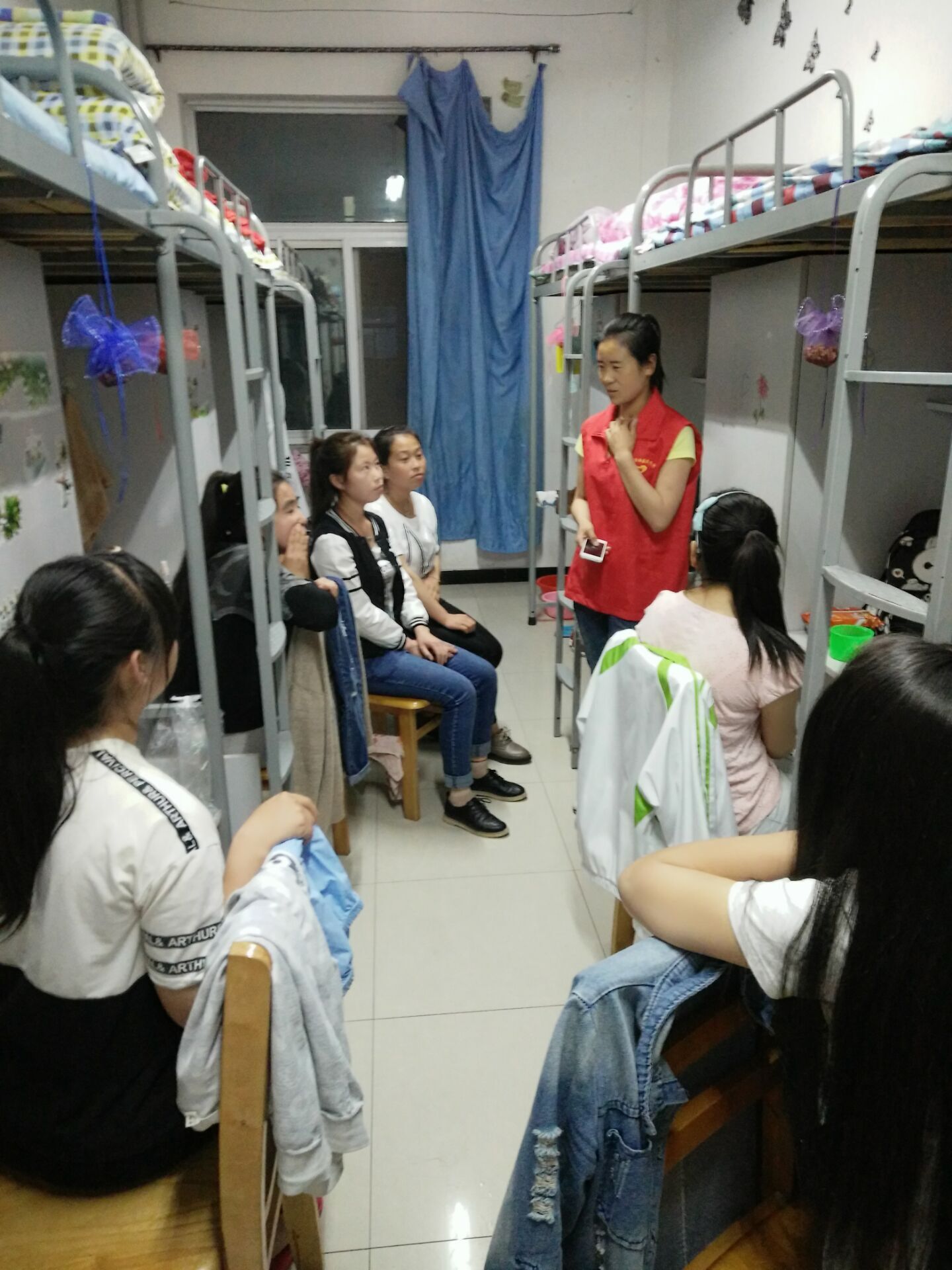 阳光寝室,阳光做事。为全面普及宿舍文明礼仪知识,践行礼仪规范,培育良好德行。4月1日-5月10日,生物与制药技术系开展了“我爱我家”宿舍礼仪宣传活动。活动中,志愿者利用晚上同学们准备休息前的时间,到各个宿舍进行宣讲。宣讲内容围绕宿舍文明礼仪进行,内容包括:1.早起晚寝做到快、齐、静。2.室内环境做到整洁、清新、雅致。3.讲究卫生,预防疾病。4.爱护公物,节约水电。5.注意安全,防患未然。并向大家发起倡议,提倡就餐在餐厅,拒绝主食、熟食进宿舍,禁止宿舍饮酒、吸烟,按时返校就寝等。此次活动使同学们更进一步的认识和了解宿舍文明礼仪,为更好的与舍友相处和创建文明宿舍打下了良好基础。