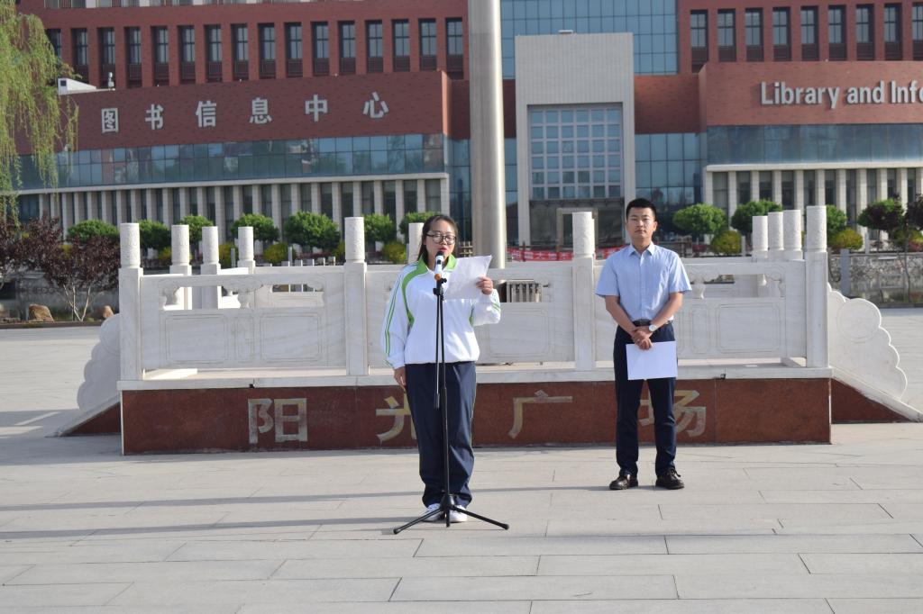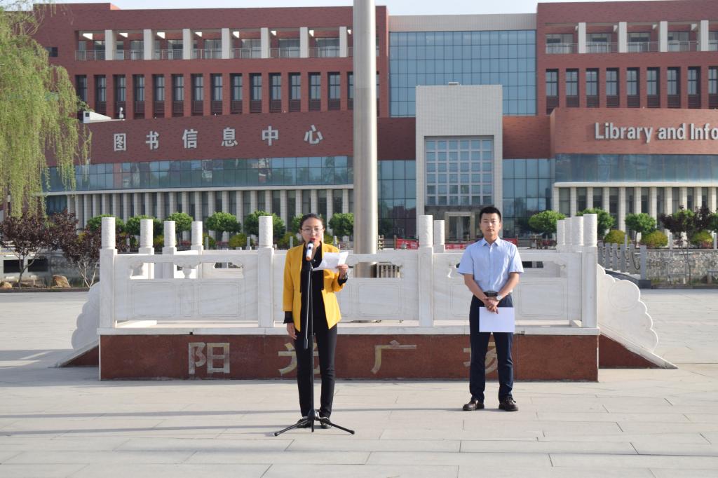 升旗仪式上,生物与制药技术系辅导员岳圆勉励青年学子热爱祖国,努力学习,苦练本领,传承“五四”薪火,弘扬“五四”精神,志存高远,坚定信念,一步一个脚印的书写自己无悔的青春。2017级生物制药技术一班张海洁号召全体同学,要积极响应习近平总书记5月2日在北京大学师生座谈会上说的新时代青年要爱国,忠于祖国,忠于人民;要励志,立鸿鹄志,做奋斗者;要求真,求真学问,练真本领;要力行,知行合一,做实干家。