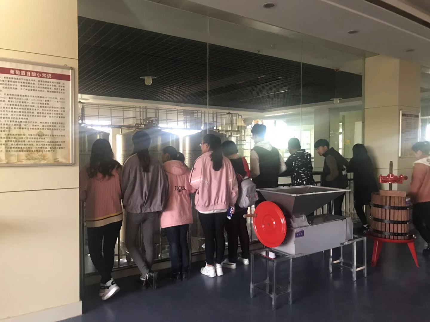 企业技术人员为同学们详细的讲解了企业不同品种的葡萄酒产品的葡萄原料品种、酿造工艺、产品感官特性评价等专业知识,并对西夏王酒庄的发展历史、主要生产的产品和取得的荣誉等企业文化等进行了详细的介绍。同学们认真聆听企业教师的讲解,并不时的向企业专家和专业老师虚心请教具体的葡萄酿酒工艺及设备应用等技术问题。