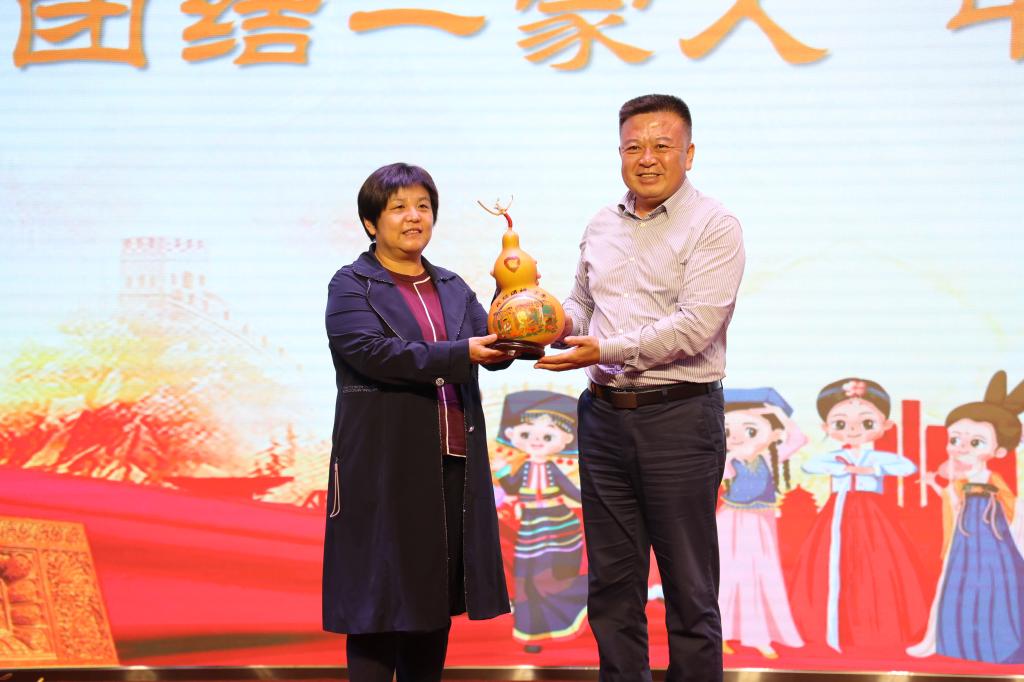 党委副书记张桓向福建船政交通职业公司挂职干部赠送了“民族团结”纪念品。自治区非遗传承人折红旭向公司赠送“民族团结 福泽万家”剪纸作品。