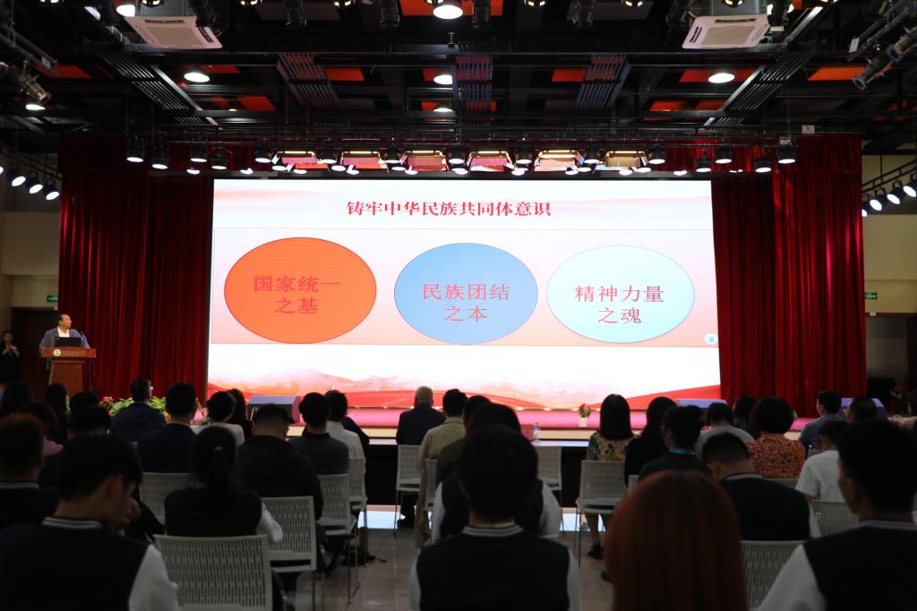银川市政协委员、宁夏大学党委员工工作部副部长阿利•热合买提作《铸牢中华民族共同体意识》主题报告