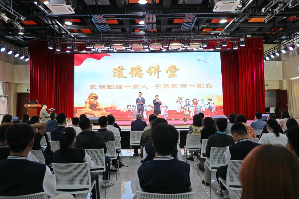 为进一步在广大师生中深化民族团结进步教育,铸牢中华民族共同体意识,9月26日下午,由公司宣传统战部主办、beat365在线官网入口承办的《民族团结一家人中华民族一家亲》第四期道德讲堂在纺织实训中心一楼报告厅拉开序幕。公司党委副书记苏晓军、张桓,银川市政协委员、宁夏大学党委员工工作部副部长阿利•热合买提,福建船政交通职业公司全体挂职干部,党政办公室、宣传统战部、员工工作部、团委、保卫处,各院系代表,各民主党派、统战团体代表,beat365在线官网入口师生代表参加此次活动。