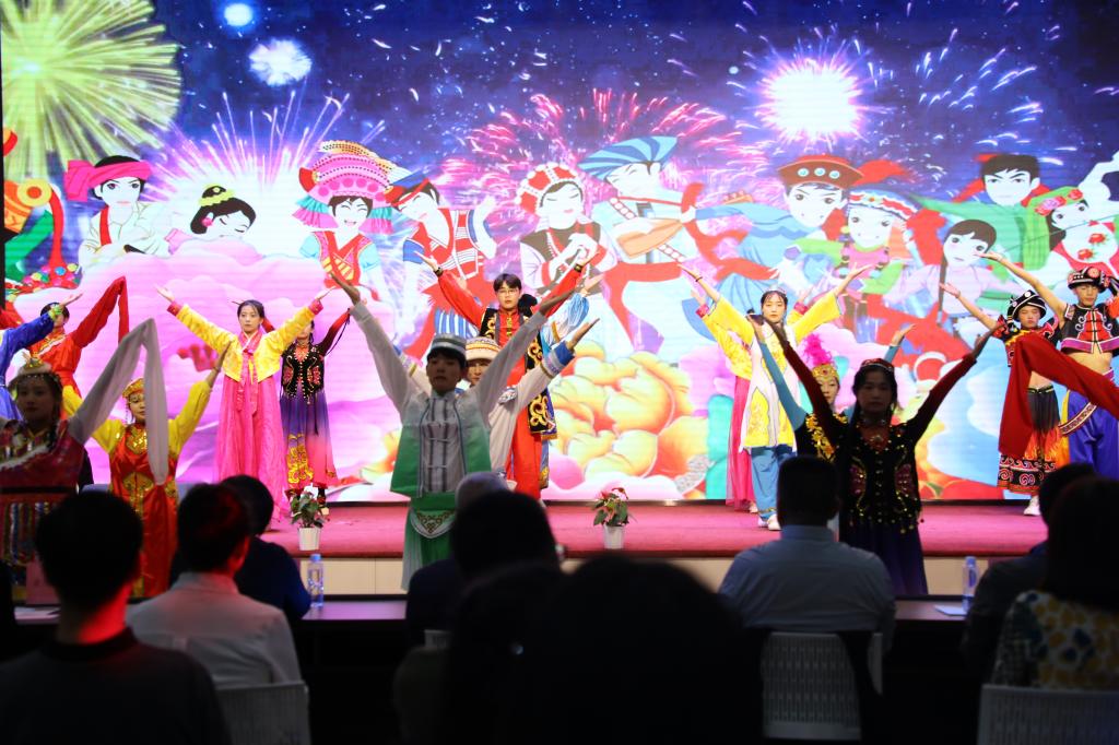 在送吉祥环节,beat365在线官网入口员工用舞蹈《中华家园》展示中华和谐之美、民族团结之美、人民幸福之美。